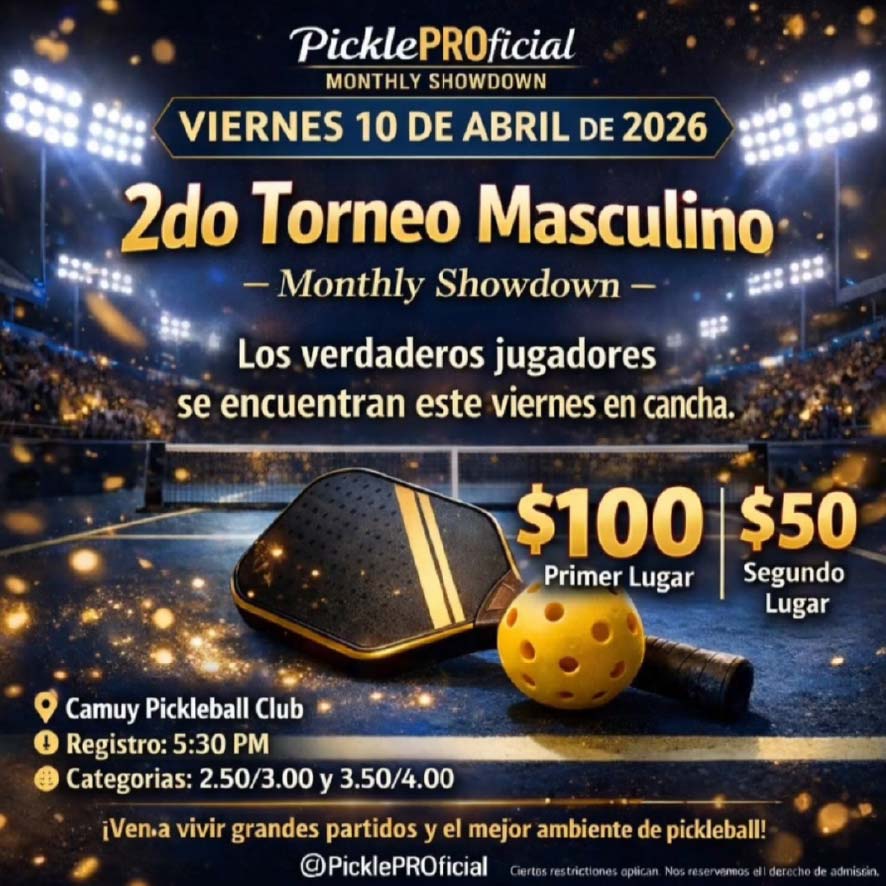 ● "2do Torneo Masculino" Pickleball Tournament in Camuy, Puerto Rico April 10, 2026 https://puertoricopickleballtournaments.com/event/2do-torneo-masculino/ |