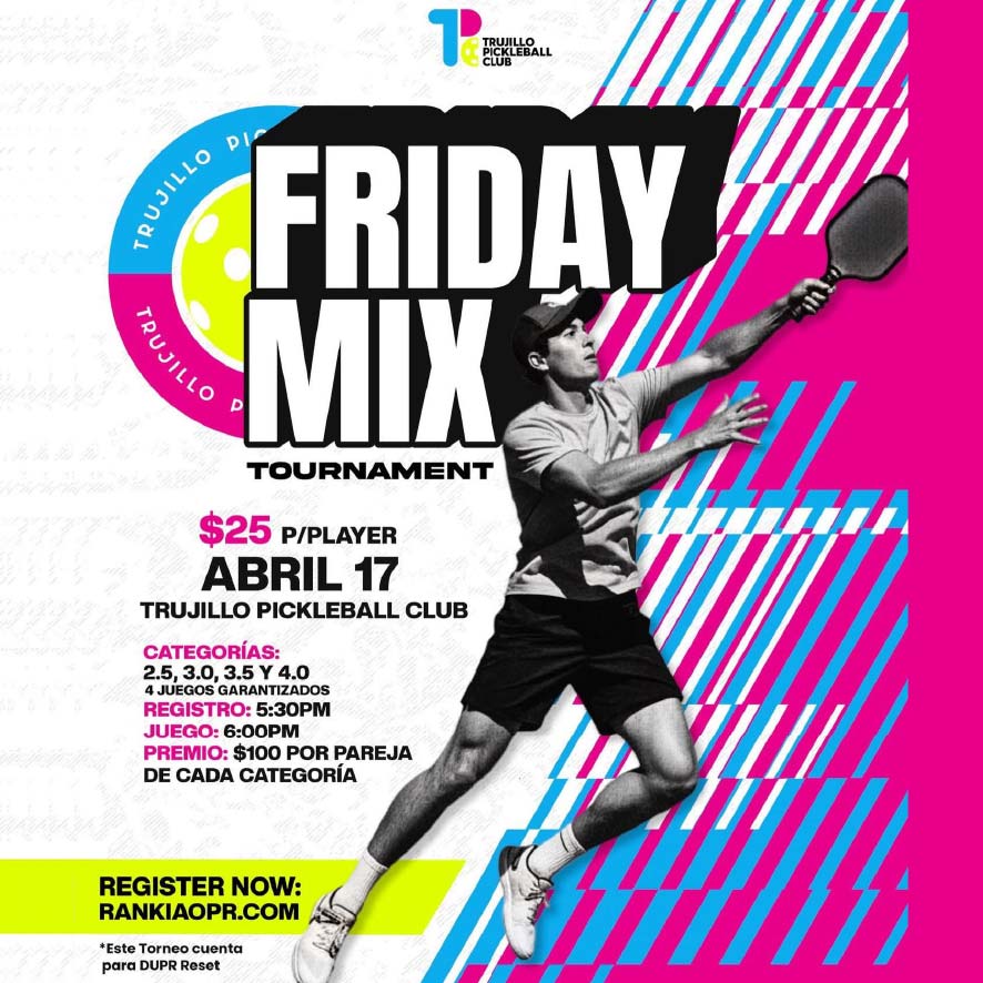 ● "Friday Mix Tournament April 2026" Pickleball Tournament in Trujillo Alto, PR April 17, 2026 https://puertoricopickleballtournaments.com/event/friday-mix-tournament-april-2026/ |