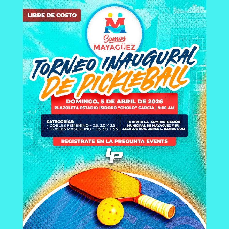● "Torneo Inaugural de Pickleball Mayagüez" Pickleball Tournament in Mayagüez, Puerto Rico April 5, 2026 https://puertoricopickleballtournaments.com/event/torneo-inaugural-de-pickleball-mayaguez/ |