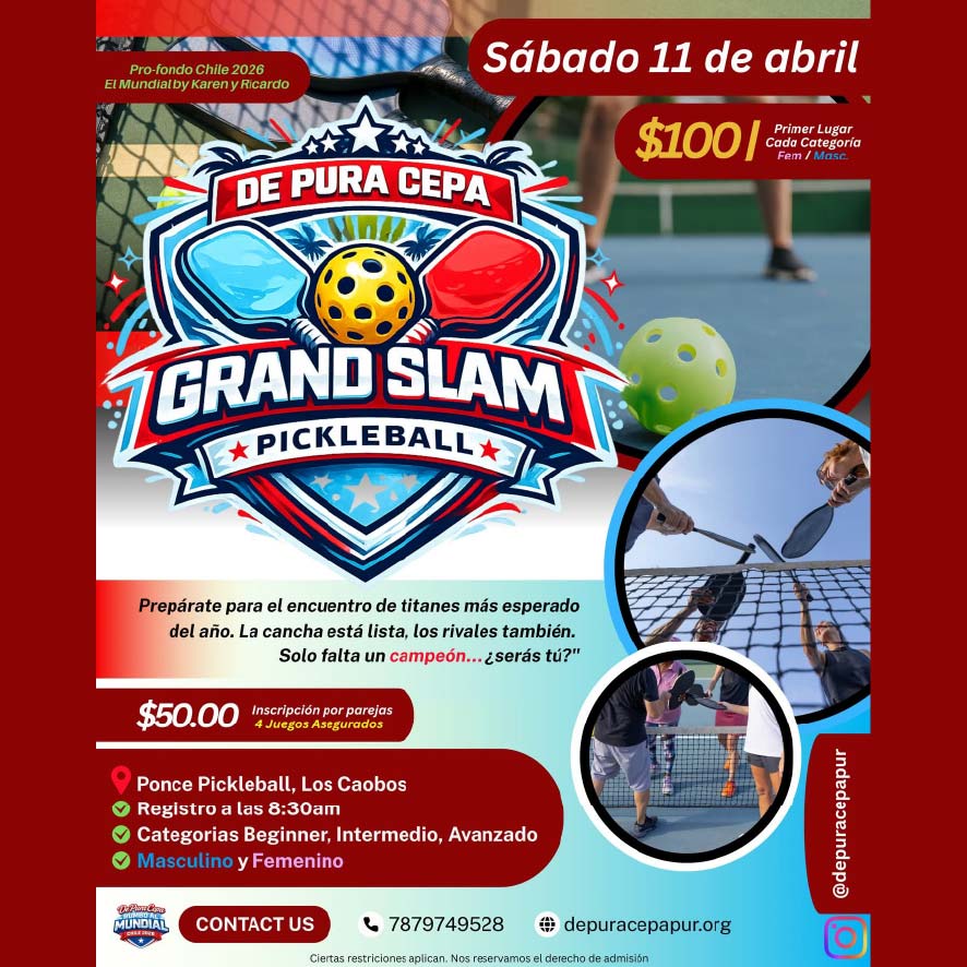 ● "De Pura Cepa Grand Slam" Pickleball Tournament in Ponce, Puerto Rico April 11, 2026 https://puertoricopickleballtournaments.com/event/de-pura-cepa-grand-slam/ |